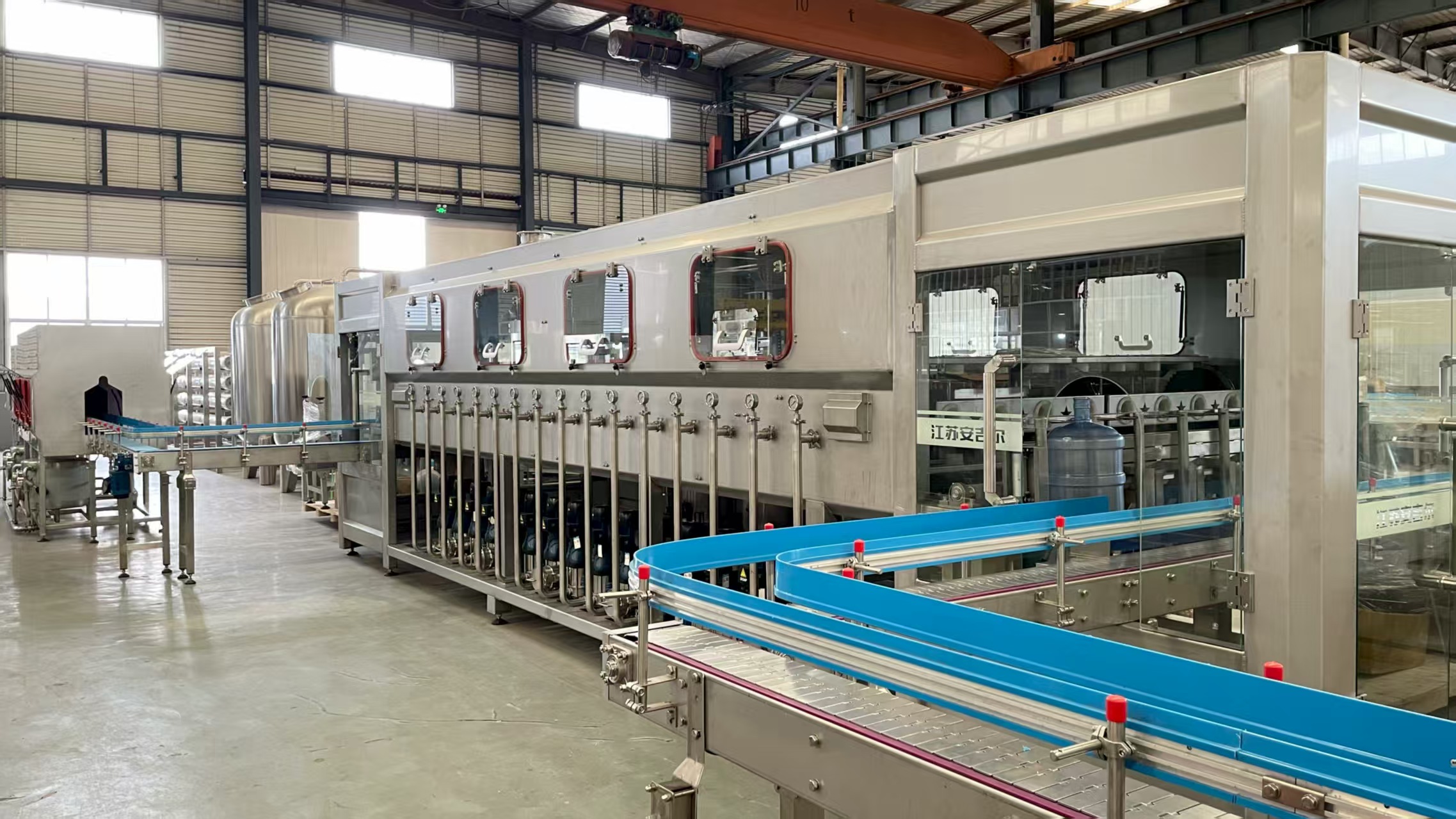 The 2000 barrel full automatic barreled water production line is a special equipment for filling 3 gallons and 5 gallons of pure water, and can also be used for filling distilled water, mineral water and other aseptic liquids.